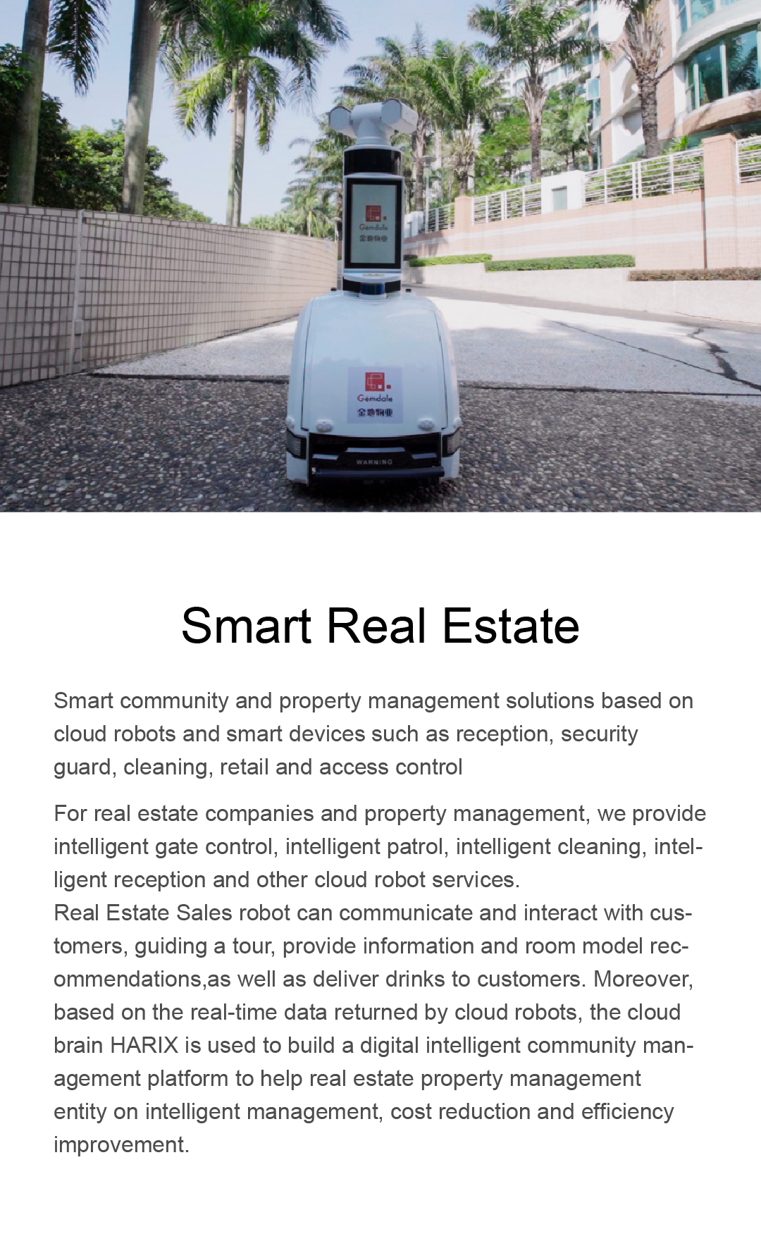 Smart community and property management solutions based on cloud robots and smart devices